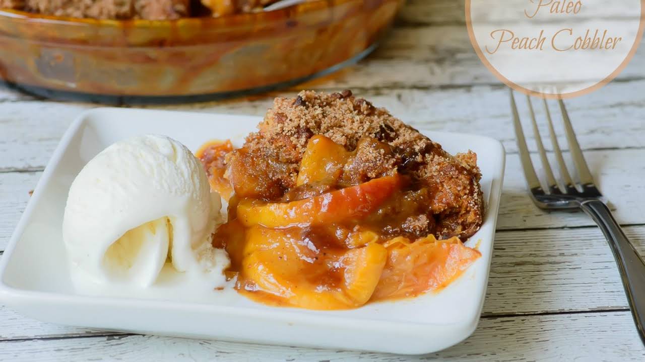 Almond Flour Peach Cobbler Almond Flour Peach Cobbler / Add the flour, baking powder, salt, cinnamon, and nutmeg.