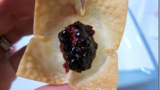 Brie Wontons / Place the wonton skins out on a wooden board.