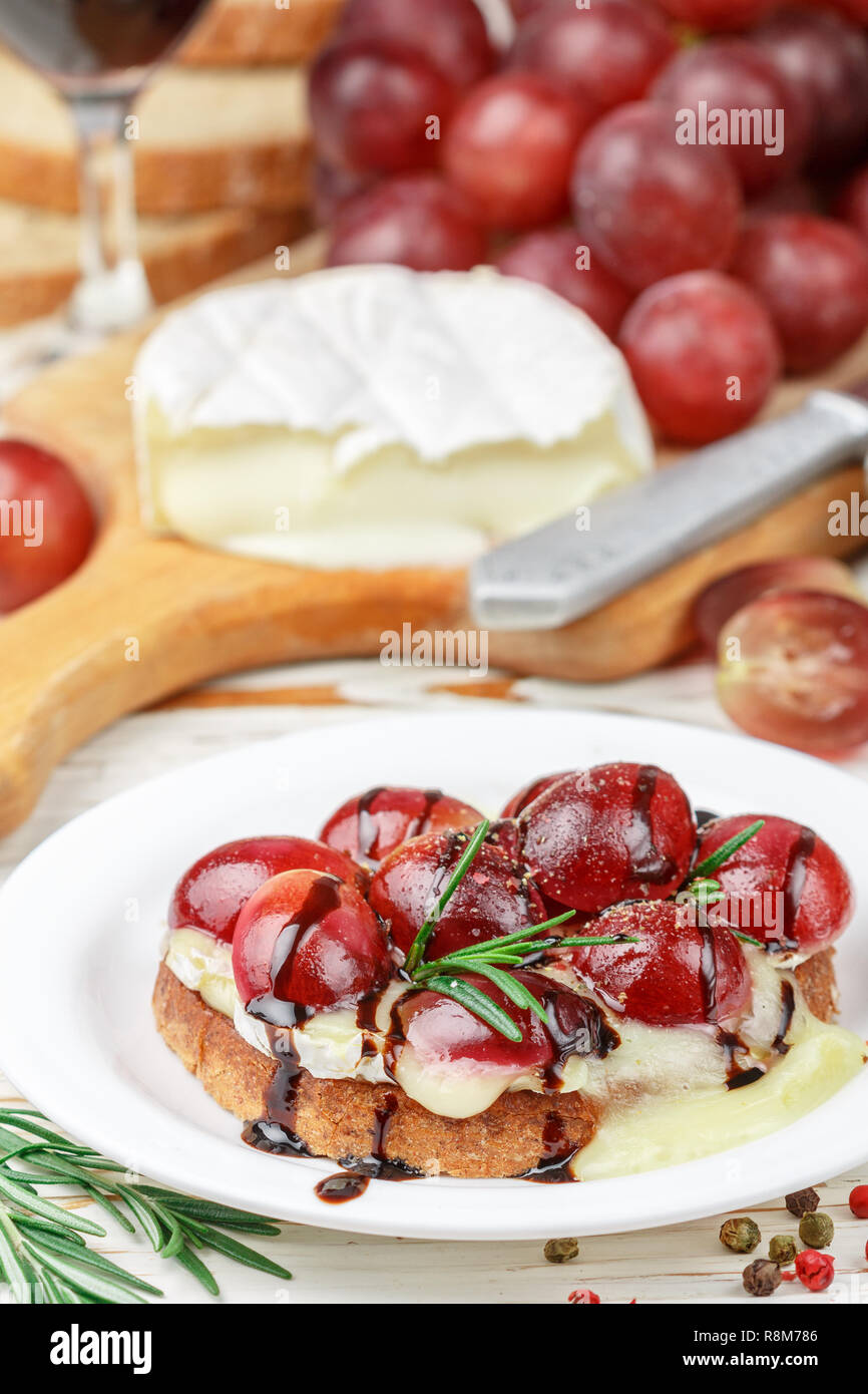 Camembert Crostini Camembert Crostini - Rich, creamy imported camembert dripping with honeyed strawberries and nuts on french bread.
