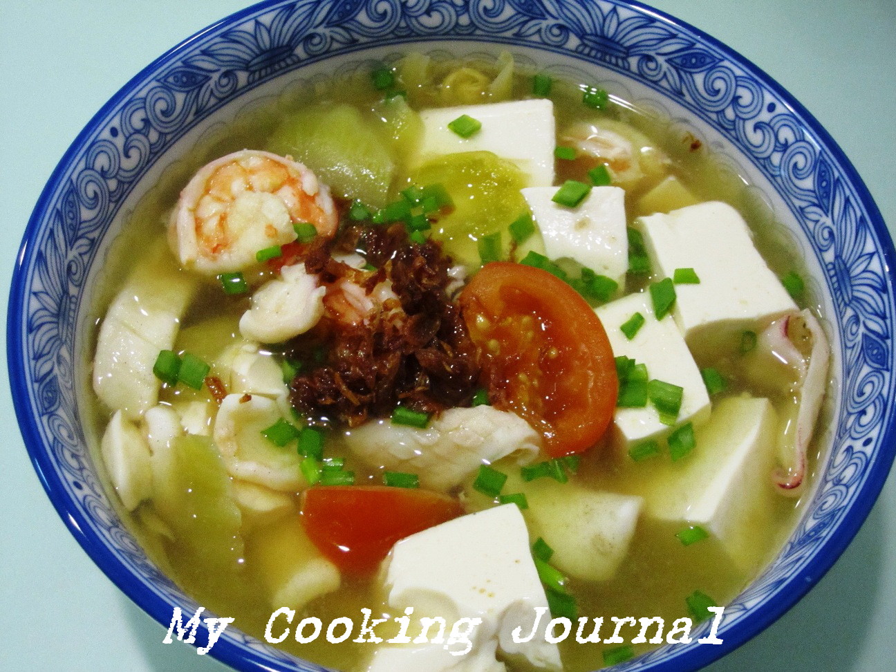 Chinese Seafood Soup With Tofu Chinese Seafood Soup With Tofu - Mix salt, pepper and some cornflour for a while, rinse and drain again.