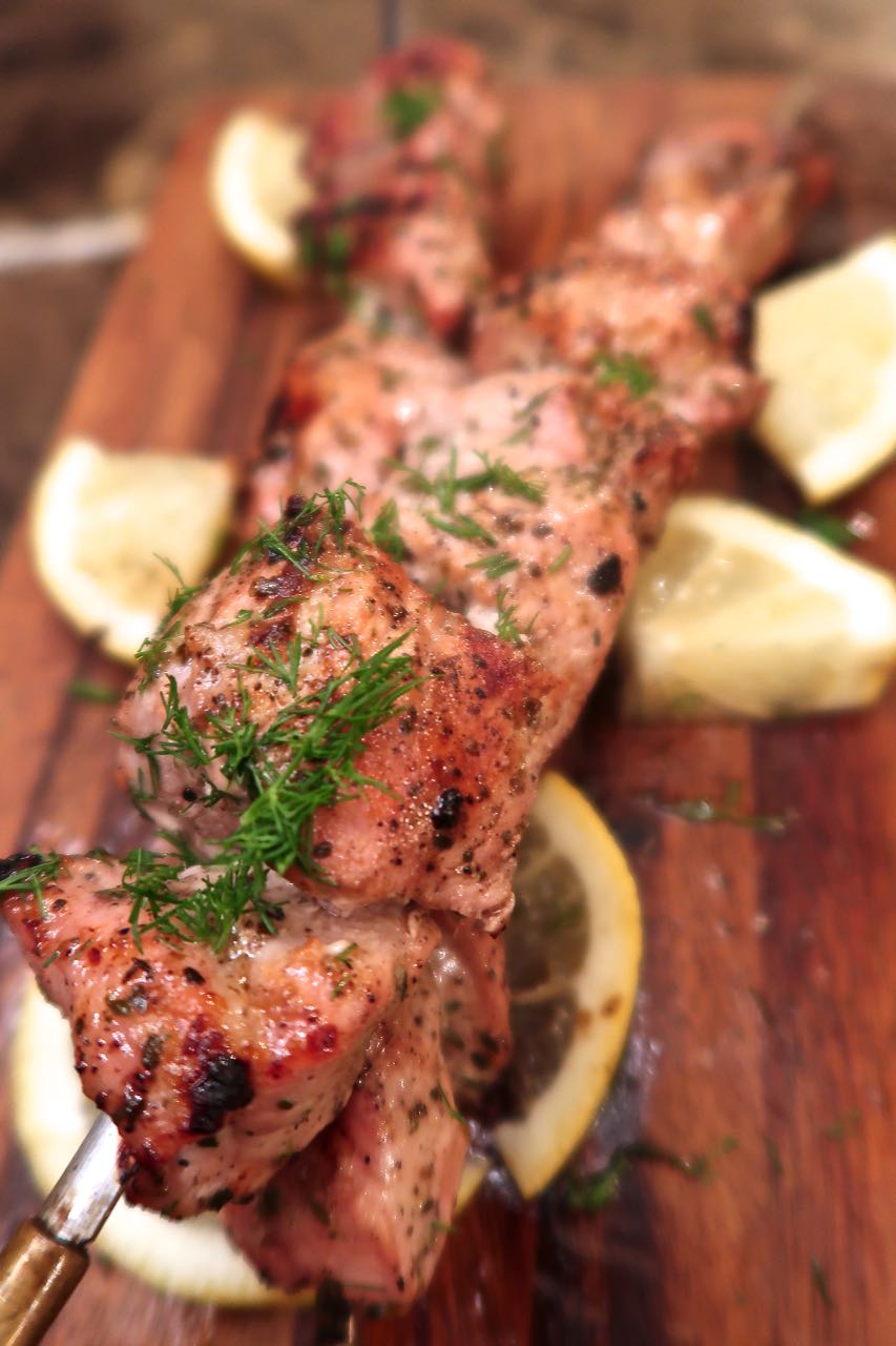 Fish Souvlaki / The meat is usually pork, but other meats are sometimes used instead.
