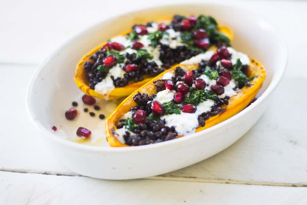 Lentil Wild Rice And Cranberry Stuffed Squash Recipe Runner - Lentil stuffed delicata squash with cashew raita.