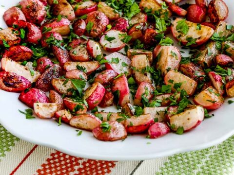 Roasted Radishes Balsamic Vinegar Roasted Radishes Balsamic Vinegar : Pepper, balsamic vinegar, salt, brussels sprouts, garlic, extra virgin olive oil.