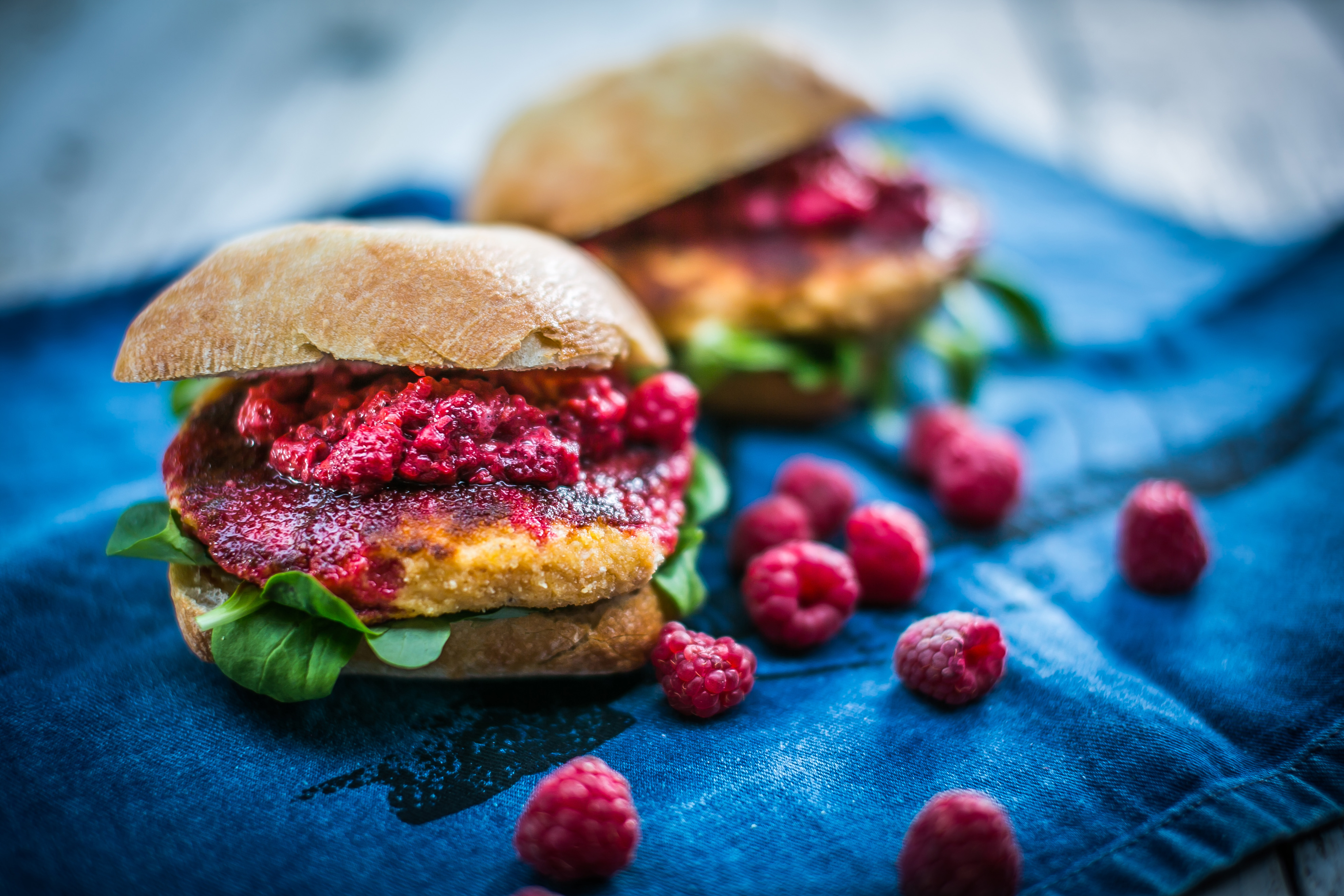 Salmon Burger With Raspberry And Pink Peppercorn Sauce - The pink peppercorns, along with a nip of horseradish and fresh dill, provides a lovely burst of flavor over this rich, tender roasted salmon.