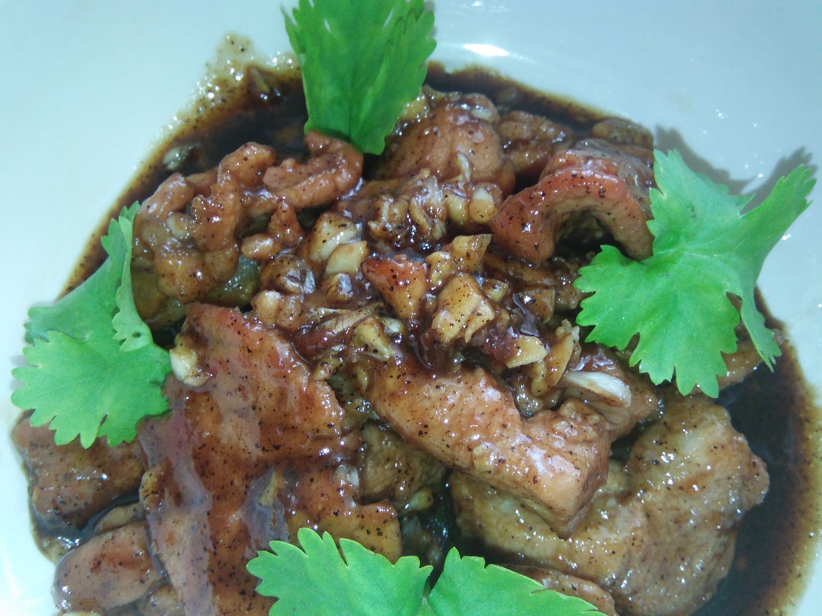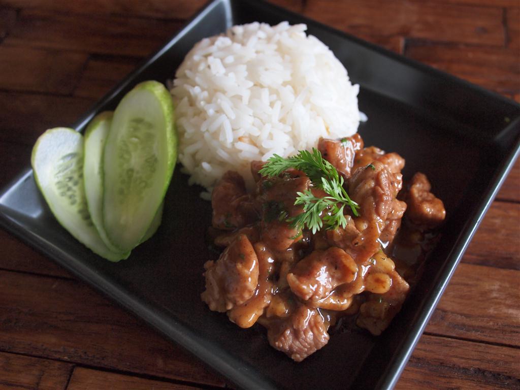 Thai Garlic Pork Recipe Thai Garlic Pork Recipe - Thinly sliced pork shoulder gets marinated, put on a stick, grilled, and brushed with coconut cream.