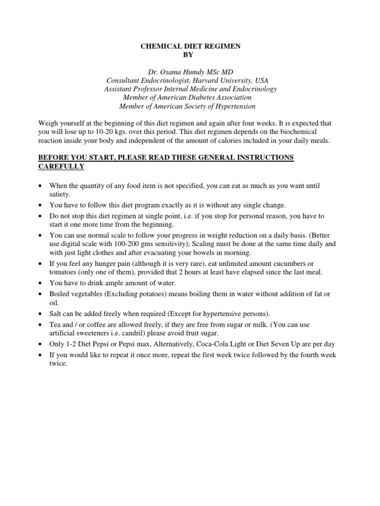 The Chemical Diet Plan The Chemical Diet Plan - The chemical diet is one of the newer fad diets that people have been taking an interest in doing.