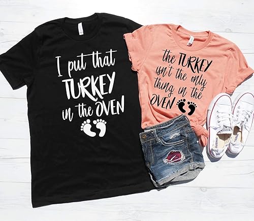 Official The Turkey Ain T The Only Thing In The Oven Shirt Hoodie Tank Top And Sweater - For pregnancy couple matching click our brand name, buy this funny thanksgiving tee reveal with thanksgiving pregnancy announcement and let this apparel to be a hit in the thanks giving party, just gobble the turkey and make happy some toddlers.